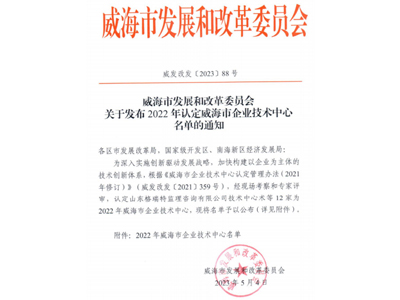 喜报!我司荣获“2022年威海市企业技术中心”认定